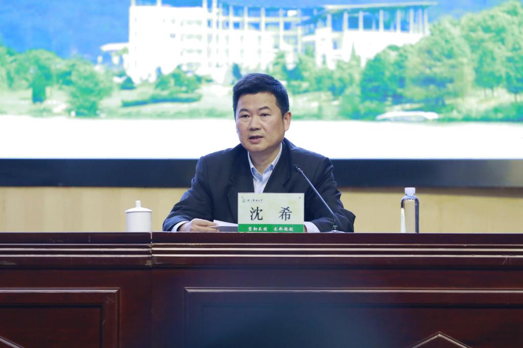 會議回顧總結2023年學校工作,研究部署2024年重點任務,全力推動高水平大學建設與林學登峰學科建設。校黨委書記朱斌主持會議并講話,校長沈希講話,校黨政班子成員出席會議。