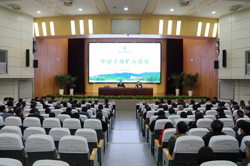 2月26日,是新學期開學第一天。學校在圖書館第一報告廳召開2024年第一次中層干部擴大會議,這也是浙農林大的“新春第一會”。