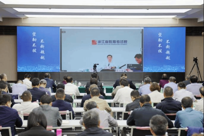 本次會議采取“線上+線下”相結合的形式同步進行。浙江省教育廳黨組成員、浙江省教育考試院黨委書記黃亮,專家組組長、常州大學原黨委書記史國棟,專家組副組長、北京林業大學原副校長駱有慶,專家組副組長、浙江水利水電學院原院長陳光亭及專家組全體成員線上出席會議。浙江農林大學全體校領導出席會議。會議由浙江省教育考試院評估部主任張應敏主持。