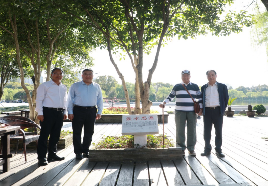 座談會前,學生代表為陳每文先生獻上鮮花。陳每文先生攜家人步行至“飲水思源”碑,講述了陳年井箍遷移和設立“飲水思源”碑的故事,感懷故園,感念慈恩。