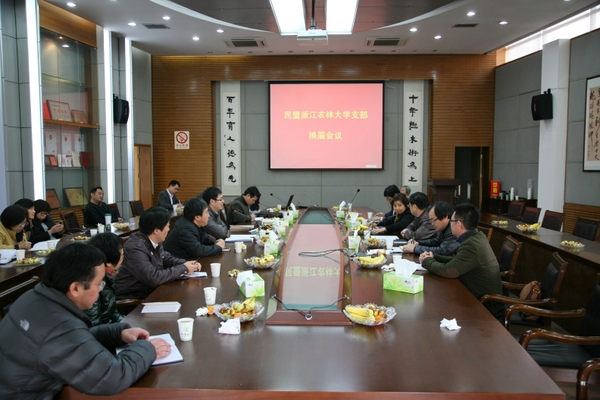 浙農林大新聞網訊  11月28日上午,中國民主同盟浙江農林大學支部換屆會議在智能實驗樓會議室舉行。民盟浙江省委會秘書長兼辦公室主任、省直工委副主委汪傳凱,民盟浙江省委會組織部部長、省直工委副主委俞逸敏,校黨委統戰部部長童曉暉等參加了會議。