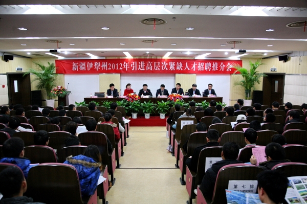 浙農(nóng)林大新聞網(wǎng)訊  11月30日上午,新疆伊犁州2012年引進高層次緊缺人才招聘推介會在我校圖書館第二報告廳舉行。推介會由副校長張立欽主持。伊犁州黨委組織部常務副部長王剛,霍城縣委常委、組織部長趙麗,察布查爾縣委常委、組織部長張宏,新源縣委常委、組織部長張斌,伊犁州黨委組織部人才辦副主任黨萬成等出席了會議。我校包括碩士、本科生在內(nèi)的200余名畢業(yè)生參加了本次推介會。
