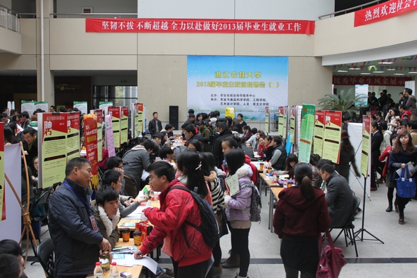 此次招聘會共有100余家企業(yè)提供工作崗位近千個,涵蓋了食品檢測、農(nóng)業(yè)技術(shù)、工程管理、外貿(mào)銷售、行政管理、電子商務(wù)、茶藝師、廣告策劃、設(shè)計類等多個領(lǐng)域。招聘會現(xiàn)場火爆,除了應屆本科畢業(yè)生和研究生應聘以外,部分低年級同學也出現(xiàn)在招聘會現(xiàn)場,提前感受招聘會氣氛。企業(yè)采取現(xiàn)場問答、自我介紹等方式考察學生,學生通過聽取企業(yè)的對企業(yè)環(huán)境、規(guī)模和工資待遇方面的海報宣傳資料的簡介來選擇自己心儀的單位。“你對你的專業(yè)學習怎么評價?”、“有實習經(jīng)歷嗎?”、“在校有做學生干部經(jīng)歷嗎?主要鍛煉到了什么?”、“如果要從基層做起,你愿意嗎?”……招聘單位的HR們向應聘同學提出自己的問題,企業(yè)在感受到我校學生專業(yè)知識扎實、動手實踐能力強的同時有的放矢的招納到賢才。
