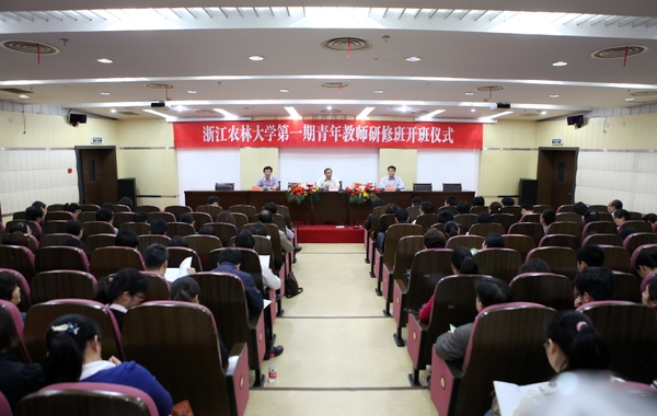 浙農林大新聞網訊  5月26日上午,我校第一期青年教師研修班開班儀式在東湖校區圖書館第二報告廳舉行。廈門大學教育研究院教授、博士生導師別敦榮,副校長張立欽,以及相關部門負責人、各教學單位教學副院長和近200名青年教師參加了本次開班儀式。教務處處長邵千鈞主持開班儀式。