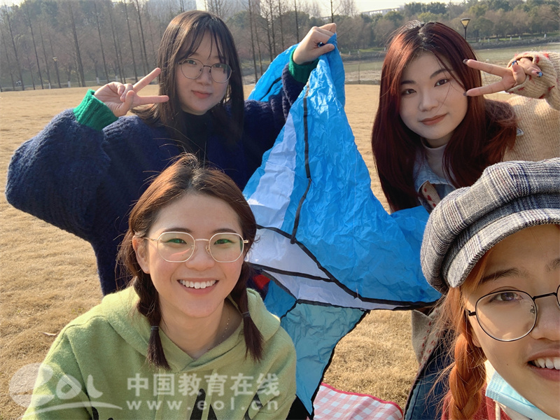 在生活上,她們除了一起吃飯、旅游外,還有個特別的“傳統”就是放風箏。從大一開始,每年的春天、秋天,她們就會相約在校園里放風箏。一起騎車也是從大一開始,回憶起騎著電瓶車放鯨魚風箏,又被樹卡住的趣事時,四人笑作一團。
