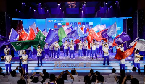 各參賽學校在閉幕式現場揮舞旗幟 浙江農林大學供圖