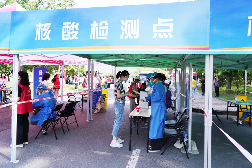 2022年9月11日,浙江農(nóng)林大學(xué)新生在報(bào)到現(xiàn)場查驗(yàn)“兩碼一表”、自動(dòng)測溫、身份核驗(yàn),完成新生報(bào)到手續(xù)后立即進(jìn)行核酸檢測、行李消毒。
