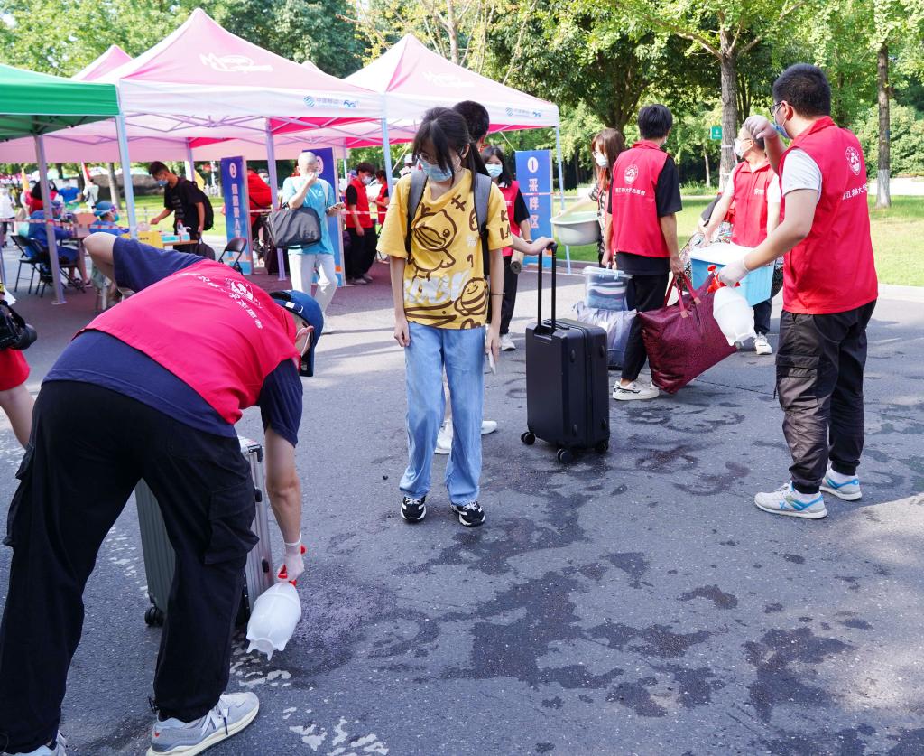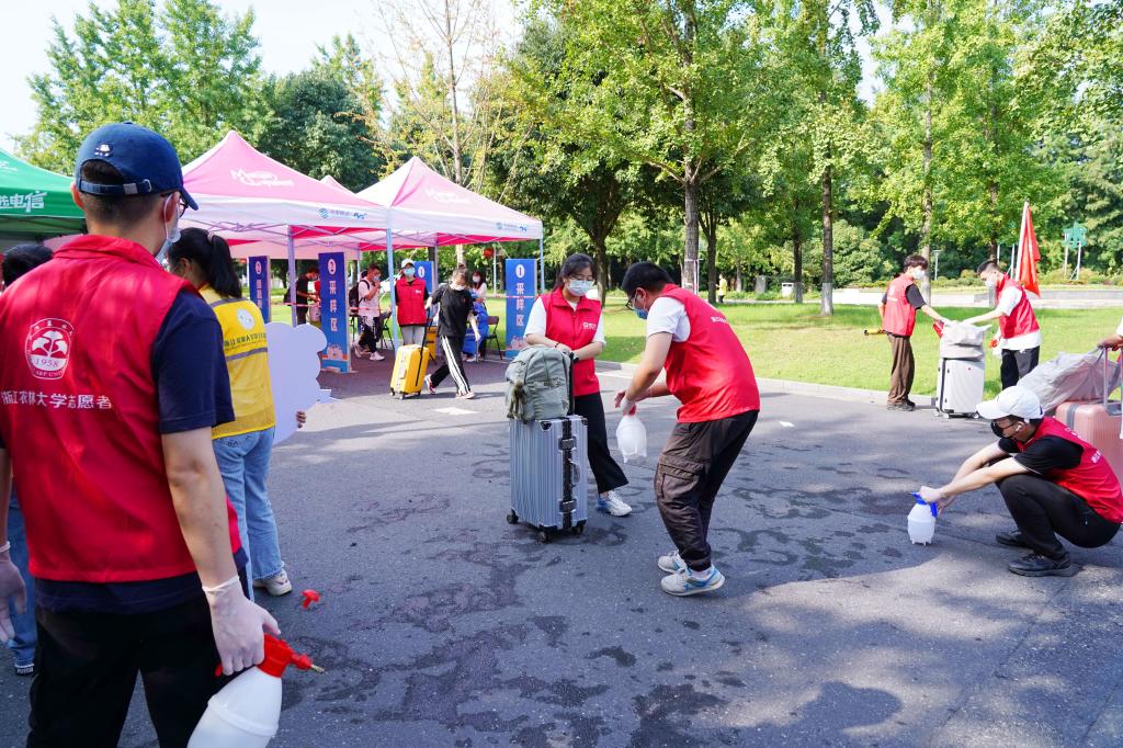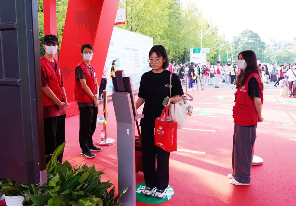 當(dāng)天是浙江農(nóng)林大學(xué)新生報(bào)到的日子。為做好疫情防控要求下的迎新工作,學(xué)校在強(qiáng)化疫情防控的同時(shí),在報(bào)到處用了上自動(dòng)測溫、身份核驗(yàn)技術(shù),并現(xiàn)場進(jìn)行核酸檢測、行李消毒,不僅提升新生報(bào)到效率、方便了新生,也減少了師生聚集和密切接觸,確保校園安全。