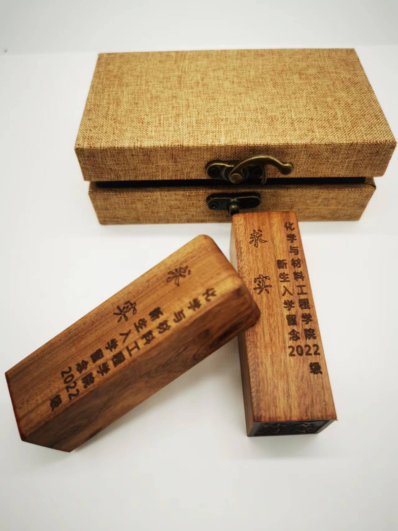 拿到新生禮包的時候,浙江農林大學化學與材料工程學院的新生們便覺分量不一般。原來,今年化學與材料工程學院為每一位新生定制了實用且富有寓意的“重量級”禮物:用紅木個性化打造新生人生第一枚專屬木質印章。印章上除了刻著院訓“求實”,還將每一位新生的姓名都戳刻在了印章上。家具設計與工程223班歐陽靜晗驚喜地表示,這份獨一無二的專屬印章,是師生們親手制作,寓意深刻,收藏價值勝過使用價值!這枚印章也讓歐陽靜晗對院訓“求實”有了更深的理解。