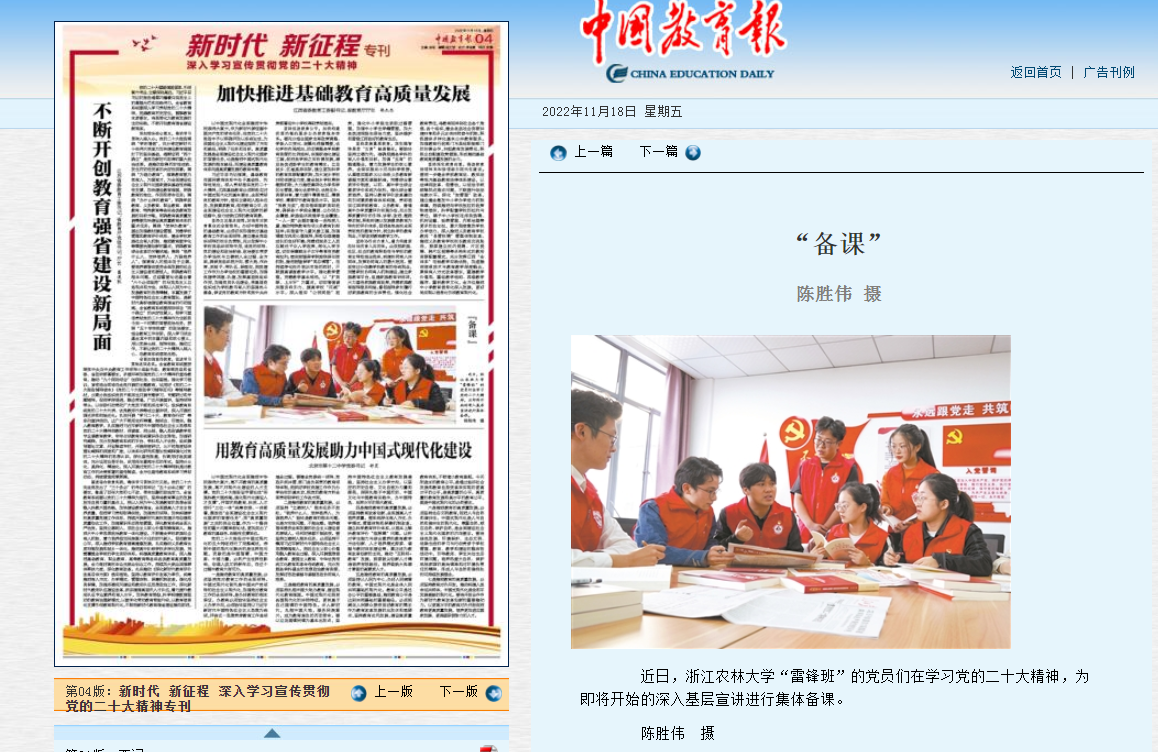 近日,浙江農林大學“雷鋒班”的黨員們在學習黨的二十大精神,為即將開始的深入基層宣講進行集體備課。