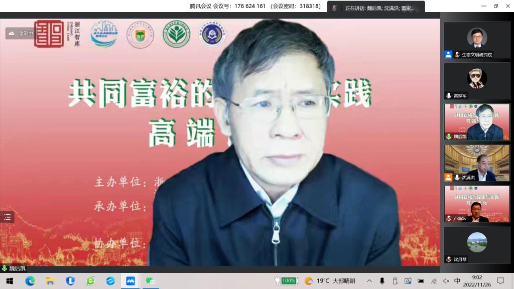 11月26日至27日,由浙江省社科聯與浙江農林大學共同主辦的“共同富裕的探索與實踐”高端論壇在杭州舉行。論壇由浙江農林大學生態文明研究院、碳中和研究院、經濟管理學院、浙江省鄉村振興研究院共同承辦,浙江省生態文明智庫聯盟、浙江省共同富裕智庫聯盟共同協辦。會議采取線上線下同步進行,分主旨報告、平行論壇、課題推進會三個環節組成。