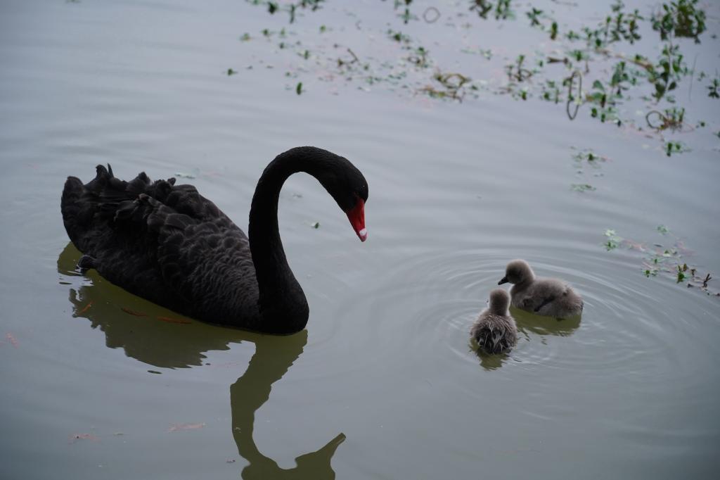 浙江農林大學原有6只黑天鵝,新增的4只毛茸茸的“小天鵝”,雖然目前還是灰色或者灰白色,但他們是正宗的黑天鵝幼崽,隨著慢慢長大羽毛會越來越黑。