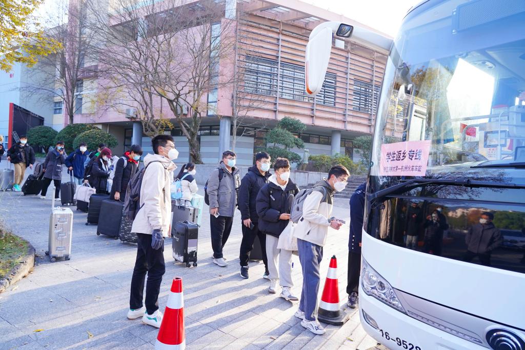 12月15日,浙江農(nóng)林大學(xué)提前返鄉(xiāng)的學(xué)生坐上了學(xué)校定制的專線班車,學(xué)生們可以通過班車直接抵達(dá)機(jī)場、火車站等,讓大家的回家之路更加安全、便捷。