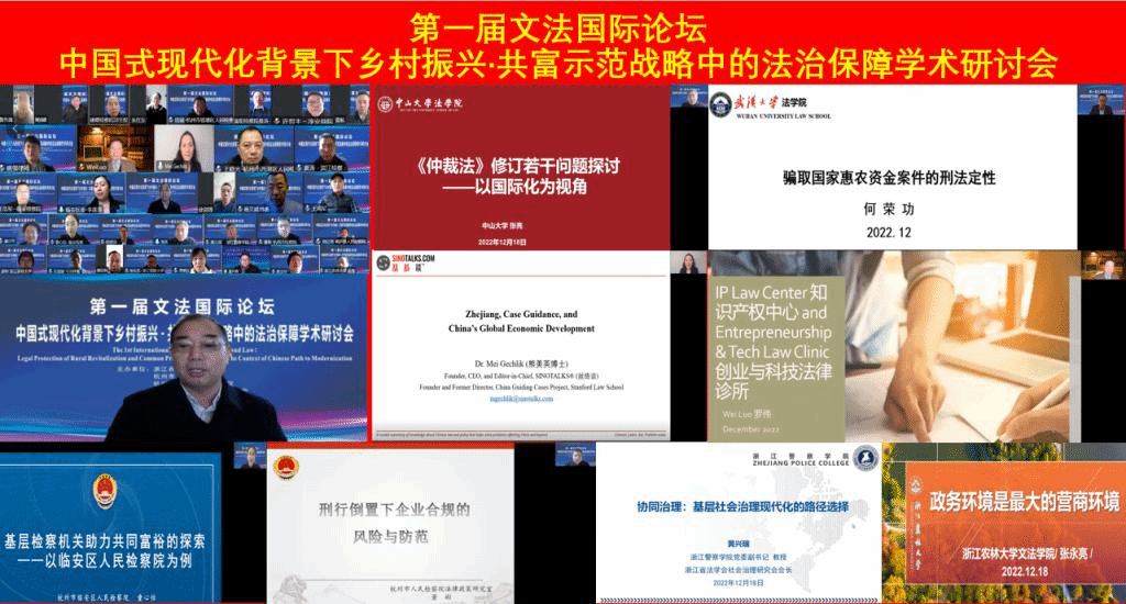 12月18日,首屆文法國際論壇在浙江農林大學舉行。論壇旨在動員國內外高校、科研智庫、司法機關及其他社會組織的專家學者,共同研討中國式現代化背景下鄉村振興·共富示范戰略中的法治保障問題,促進相關領域的國際學術交流。
