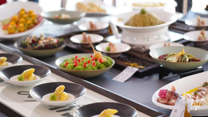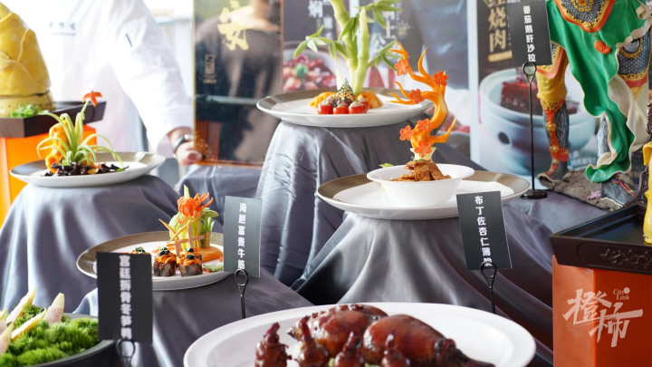 臨安竹筍宴、湖光翠竹宴、錢王家宴、天目暖鍋宴、臨安宴……在竹筍宴展示區(qū),來(lái)自學(xué)校所在地臨安的6家知名餐飲企業(yè),以竹文化元素素材為背景,以筍為食材,運(yùn)用現(xiàn)代烹飪技術(shù)和加工工藝,以炒、蒸、熘、煮、爆、燜、燴等多種方式,輔以各種葷素原料,制作 6 桌全筍宴,每桌都有同學(xué)為大家進(jìn)行講解。