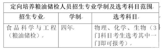 培養專業為食品科學與工程(糧油儲檢),層次為本科,選考科目要求為物理、化學、生物(3門科目考生選考其中一門即可報考)。