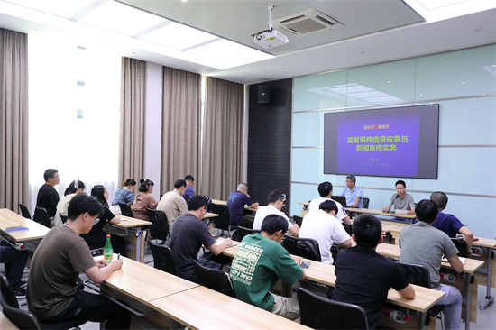 會上,夏學民結合臺風洪澇災害案例,對發生自然災害和安全生產事故之際如何盡快地報送信息、如何策略地寫好新聞稿、如何在第一時間搶拍現場視頻從而保留珍貴證據和原始檔案等都做了簡明扼要的傳授與示范。