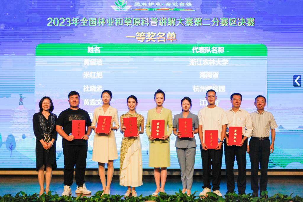 經(jīng)過(guò)激烈的角逐,本次大賽共評(píng)出44名獲獎(jiǎng)?wù)撸ㄒ坏泉?jiǎng)7名、二等獎(jiǎng)11名、三等獎(jiǎng)11名、優(yōu)秀獎(jiǎng)15名。其中一、二等獎(jiǎng)獲得者將參加8月27-29日在北京舉行2023年全國(guó)林業(yè)和草原科普講解大賽總決賽。