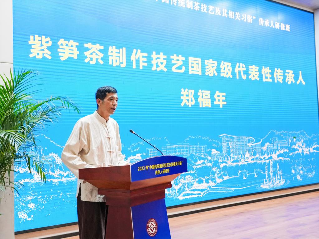 9月2日上午,由浙江省文化和旅游廳指導、浙江農林大學主辦的2023年“中國傳統制茶技藝及其相關習俗”傳承人研修班在浙江農林大學開班。該研修班是在文化和旅游部、教育部、人力資源社會保障部“中國非物質文化遺產傳承人研修培訓計劃”框架下,首次舉辦的面向茶相關國家級非遺代表性項目的研修班。