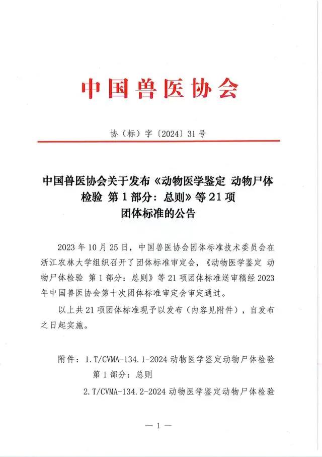 近日,由浙江農林大學動科動醫學院宋厚輝教授團隊牽頭,聯合19家單位共同參與完成的《動物醫學鑒定 動物尸體檢驗第1部分:總則》等19項動物尸體檢驗規范團體標準,由中國獸醫協會正式發布實施。該標準的制定和實施,填補了我國動物醫學鑒定領域的空白。