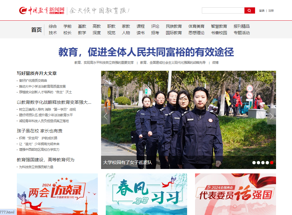 2024年3月8日,浙江農林大學“雷鋒班”女子巡邏隊成立,首批5名女子巡邏隊隊員正式上崗巡邏。浙江農林大學“雷鋒班”女子巡邏隊由該校“雷鋒班”的女生志愿者組成,主要利用課余時間進行校園巡邏,重點是監督勸阻不文明現象、發現上報安全隱患等。(中國教育報-中國教育新聞網 通訊員 陳勝偉 攝)