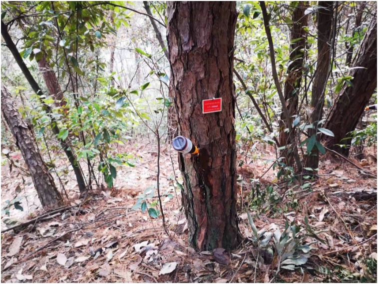 針對松材線蟲病防控藥劑匱乏、防治技術單一等問題,研究團隊研發出松墨天牛新型誘捕技術和松材線蟲病注干施藥技術,實現了媒介昆蟲的大量誘捕,以及松材線蟲的精準環保施藥,創新集成了以清理死樹為核心,以誘捕壓低蟲口密度和注干預防侵染為輔助措施的松材線蟲病綠色防控技術體系,有效遏制松材線蟲病的傳播蔓延。
