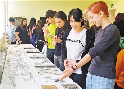 在諾維薩德大學(xué)孔子學(xué)院,學(xué)員正在欣賞中國傳統(tǒng)繪畫作品。 諾維薩德大學(xué)孔子學(xué)院供圖
