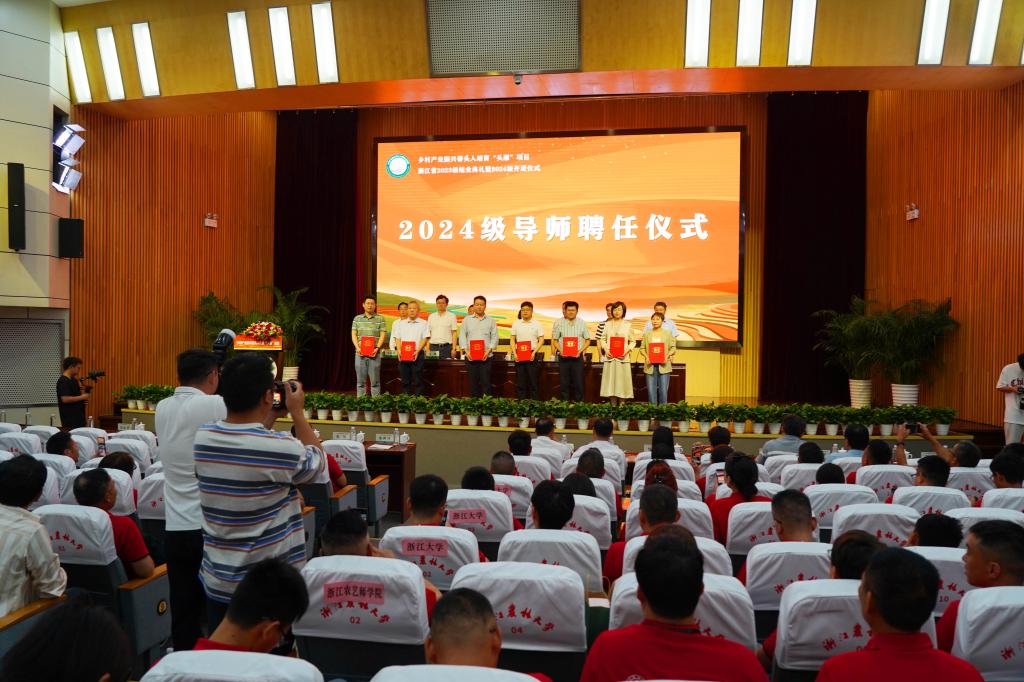 在當(dāng)天的儀式上,來自全省各地的新一批200名2024級(jí)“新雁”在浙江農(nóng)林大學(xué)開啟學(xué)習(xí)生涯。他們將和上一屆“頭雁”一樣,進(jìn)行為期一年的學(xué)習(xí)提升。根據(jù)教學(xué)計(jì)劃,學(xué)校將聘請(qǐng)校內(nèi)外專家學(xué)者、行業(yè)頂尖人才擔(dān)任他們的專業(yè)導(dǎo)師和創(chuàng)業(yè)導(dǎo)師,針對(duì)帶頭人從事的產(chǎn)業(yè)類型和自身需求,為帶頭人配備專業(yè)跟蹤指導(dǎo)教師,為其提供擴(kuò)大視野、更新知識(shí)的平臺(tái)機(jī)會(huì),增強(qiáng)創(chuàng)新創(chuàng)業(yè)創(chuàng)造能力。學(xué)校還將推進(jìn)學(xué)歷與非學(xué)歷鏈接,全方位助力“頭雁”發(fā)展。