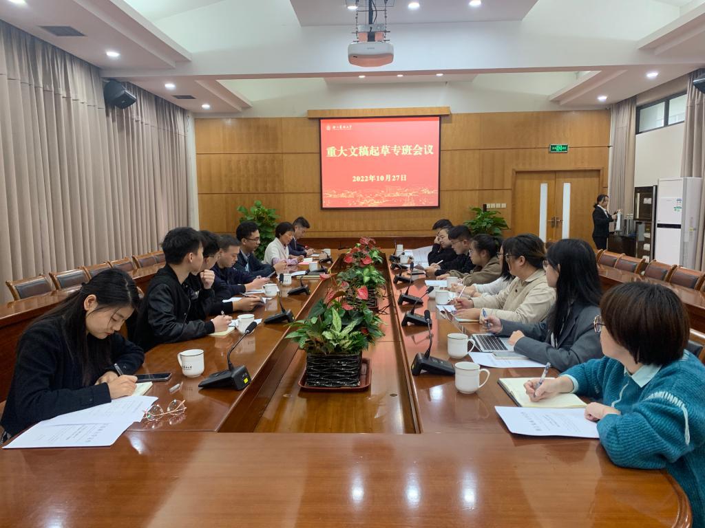 10月27日,專班召開交流會,黨辦、校辦主任董杜斌在會上對專班成員提出明確要求,一是要珍惜機會有責任,在實戰中成長,在實踐中磨煉,提升思想認識和文字水平,組建一支“召之即來,來之能戰,一切行動聽指揮”的硬核隊伍;二是要認真實踐有投入,在工作過程中處理好“小我與大我”“現時與未來”“理論與實踐”的辯證關系。在文稿撰寫工作中要“用心、用情、用力”,通過搭框架、填內容、調邏輯、細雕琢等步驟反復打磨,達到立意高、邏輯強、文字新的要求;三是要勤于學習有積累,要主動關注國家和學校在高等教育、農業農村、科技創新等領域的實時動向和大政方針,培養戰略意識,提高站位,從全局出發看待問題;培養歷史意識,尊重、把握、運用歷史規律以期解決實際問題;培養矛盾意識,用辯證的思維方式思考問題;培養創新意識,力戒文稿程式化、概念化;四是要建立機制有成效,要建立任務機制、溝通機制、學習機制,通過“項目+小組”的協作形式,加強整體學習和小組研討,努力提升學校重大文稿的高度、深度和廣度。