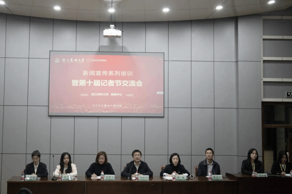 11月8日,浙江農林大學第十屆記者節交流會在11號學院樓301報告廳舉行。黨委宣傳部、新聞中心相關人員,校通訊社成員,校學生記者代表參加。通訊社記者團原團長、現“蕭山日報”蕭報學堂口才培訓師徐可為應邀出席開幕式并作新聞培訓講座。