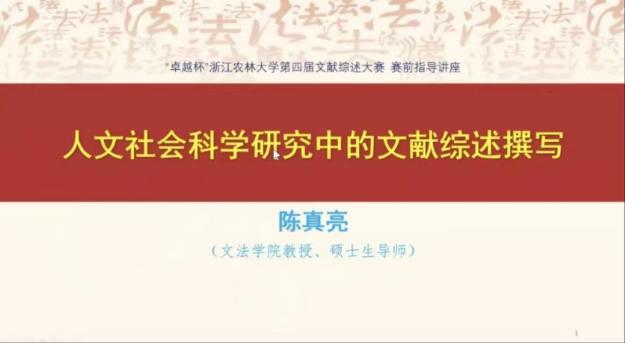 1月16日,集賢學院舉辦“卓越杯”浙江農林大學第四屆文獻綜述大賽賽前輔導講座。本次講座邀請到學校陳真亮、趙超兩位專家,分別圍繞人文社科類和農林理工類學生如何進行文獻綜述撰寫進行線上專題輔導。