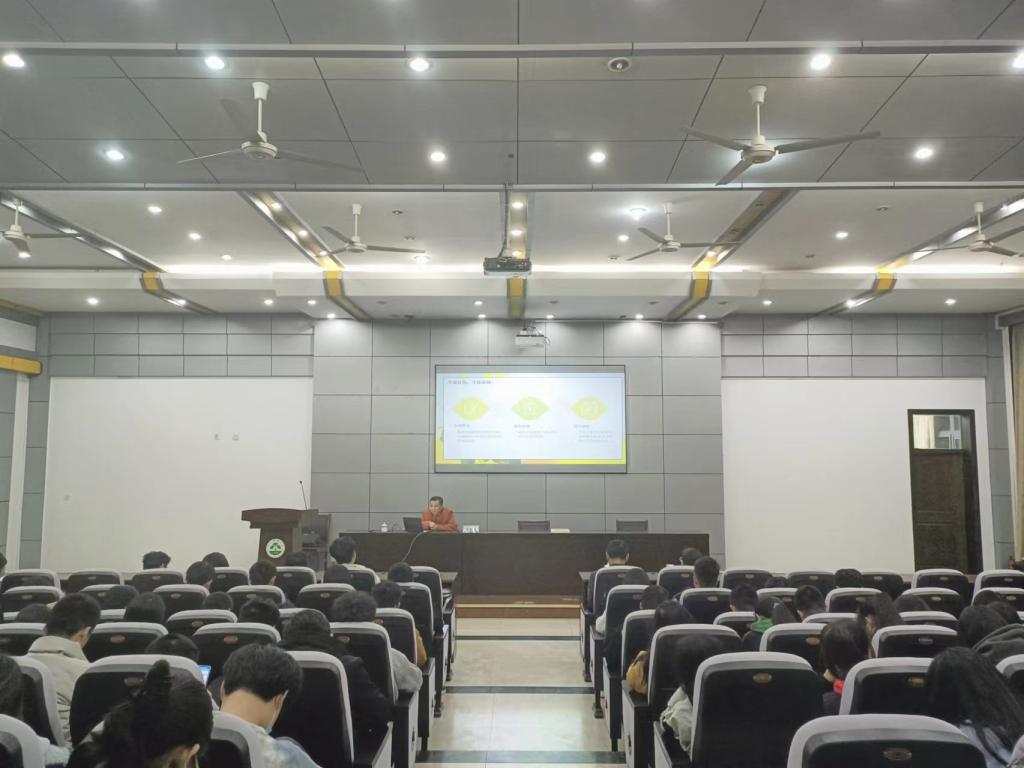 吳彤政結合自己在糧食系統三十余年的工作經歷,介紹了自己長期扎根糧食基層一線從事糧食流通業務的心得和感悟,展示了五優聯動、社會化儲糧、糧食產后服務、糧食購銷、糧油統計監測、糧食產業經濟等基礎性工作,讓同學們全新地認識了新時代的“糧油儲檢工作”。吳彤政給予同學們五點建議:一是機遇良好,大有作為;二是愛崗敬業,勤奮工作;三是廣學博覽,注重積累;四是不怕苦難,勇于攀登;五是不碰紅線,守住底線,并用李強總理的“四千”精神勉勵同學們珍惜當下,努力奮斗,不負時代,不負韶華,努力成為真正的“糧食人”。