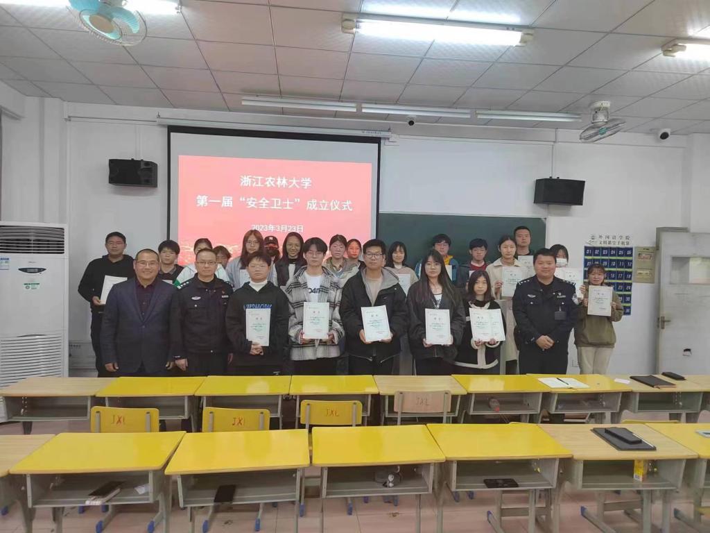 3月23日下午,我校第一屆校園“安全衛士”成立會議在衣錦校區教學樓314教室舉行。保衛處、臨安錦城派出所相關負責人、保衛干部、社區民警、輔導員代表、第一屆校園“安全衛士”等20余人參加會議。