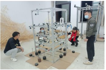 三位學子激動地表示,自省賽結束以后,所有閑暇時間都在實驗室研究賽題,大家克服困難,團結合作,做過的模型堆滿了實驗室。即使手上粘滿膠水,貼滿創可貼,仍在堅持不斷地改進方案,通過討論、計算、實驗終于使模型越來越輕,成功概率越來越高。最終,他們巧妙地采用了中國古建筑瑰寶之一的榫卯工藝,制作了滿足嚴格尺寸要求的四柱八邊形三層竹塔。該參賽模型以三重木塔結構為基本單元,模型自重138g,承受大于30多倍于模型自重的三級壓、扭、彎,滿載45kg。