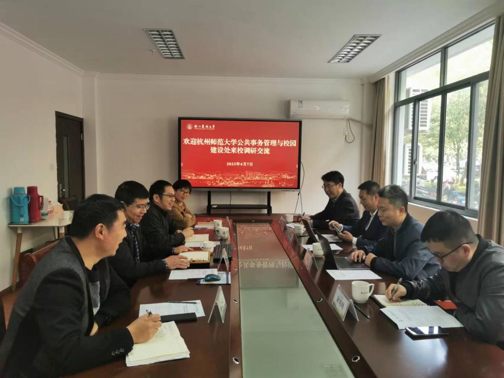 4月7日,杭州師范大學公共事務管理與校園建設處副處長、資產經營有限公司總經理王錫渡一行來校調研交流,公管處、基建處、繼教學院相關負責人陪同調研。