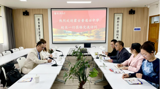 趙有華對蒙古普通話中學校長LKHAGVAOCHIR ERDENETSETSEG一行表示熱烈歡迎。他從優質生源工程、我校特色專業、全英文授課專業和學生日常管理等方面介紹了我校國際教育的基本情況。他表示,我校國際教育始終堅守“以生為本”的教育理念,以推進來華留學工作提質增效為總目標。LKHAGVAOCHIR ERDENETSETSEG對我校提供此次交流機會表示感謝。她從學校定位、辦學理念、發展歷程、生源渠道等方面介紹了蒙古普通話中學的基本情況。