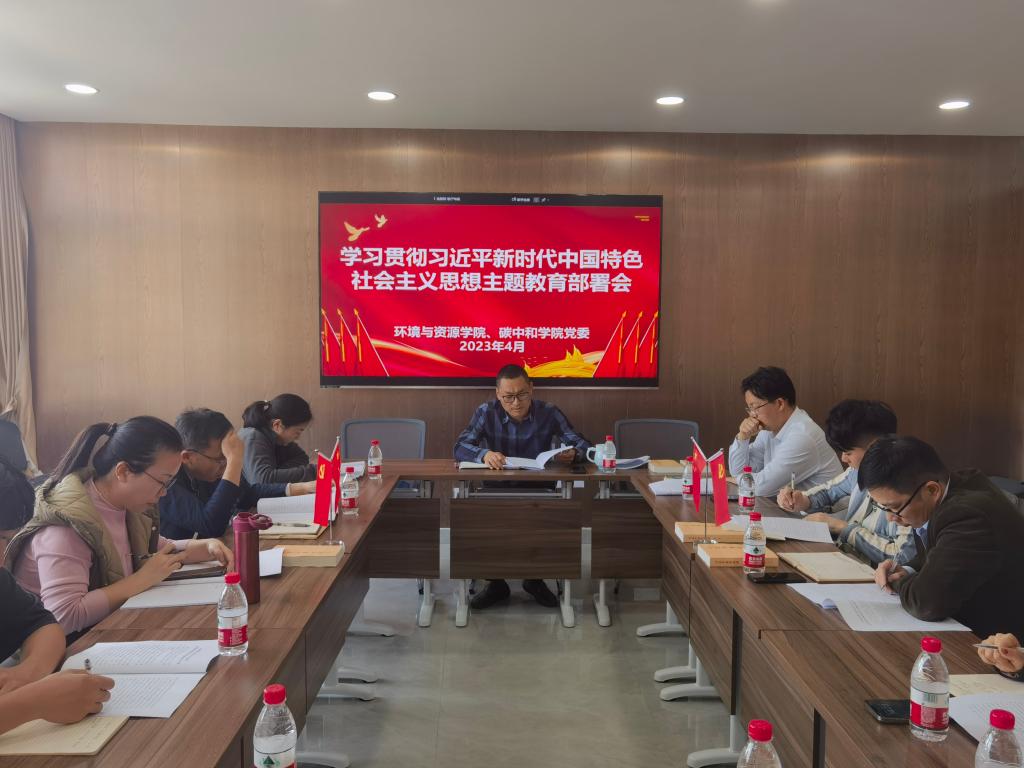 4月27日,環資院、碳中和學院召開學習貫徹習近平新時代中國特色社會主義思想主題教育部署會。會議由學院黨委書記侯錫銘主持,各黨支部書記參加會議。
