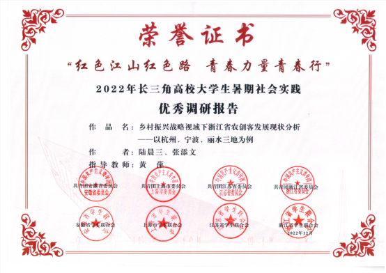 我校推報的《鄉村振興戰略視域下浙江省農創客發展現狀分析——以杭州、寧波、麗水三地為例》榮獲優秀調研報告。該報告由數學與計算機科學學院“以青春之力 共筑鄉村振興夢”大學生暑期社會實踐團成員陸晨三、張添文撰寫,黃萍老師指導。