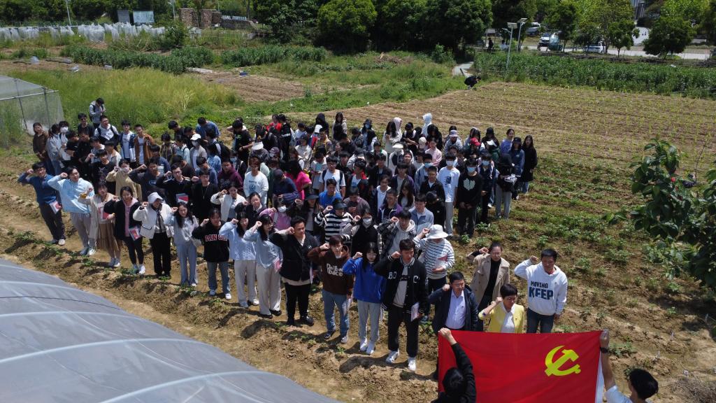 活動現場,在老師的帶領下,50余名農學院全體新發展預備黨員、團學學生干部在甘薯地開展除草活動,認識雜草種類及其危害性,提高實踐動力能力。