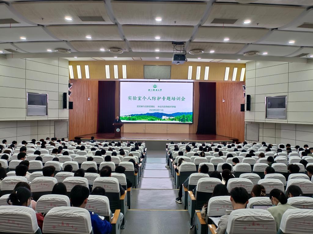 5月11日,由設備處主辦、林生院承辦的實驗室個人防護專題培訓會在圖書館第一報告廳舉行。來自農學院、林生院、環資院、化材學院、園林學院、動科動醫學院、食健學院、園藝學院、茶學院等400余位師生參與本次培訓會。