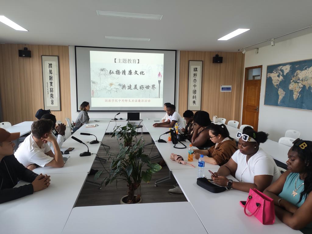 5月18日下午,國教學院緊密結合主題教育,組織部分黨員教師與來自贊比亞、赤道幾內亞、烏克蘭、吉爾吉斯斯坦、越南等國國際生代表開展了以“弘揚清廉文化、共建美好世界”為主題的中外師生共話廉潔教育活動。