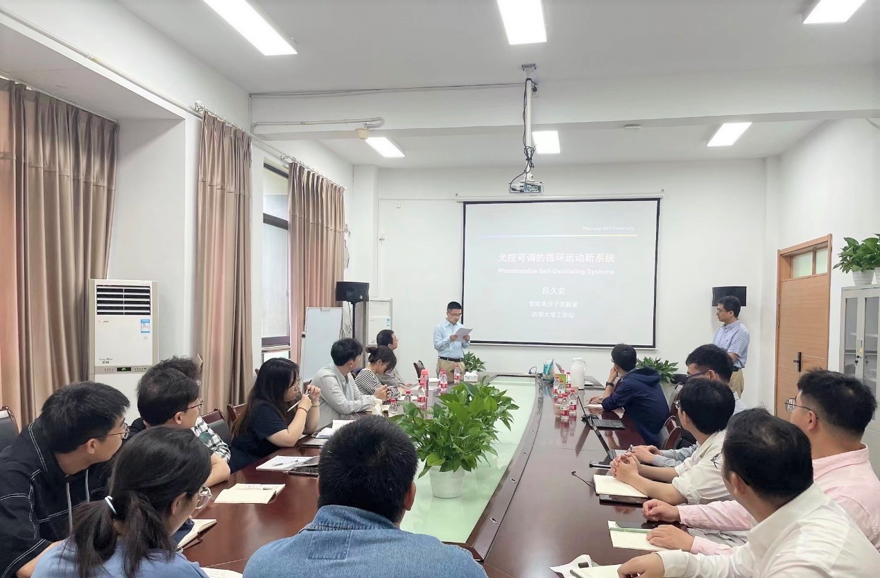 5月22日,西湖大學呂久安受邀到我校化材學院作題為《光控可調的循環運動新系統》的學術報告。活動由化材學院相關負責人主持,化材學院高分子專業教師和本研學生代表參加本次活動。