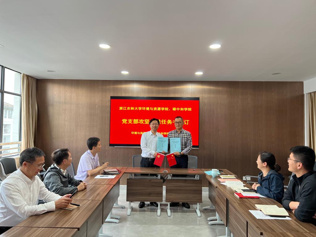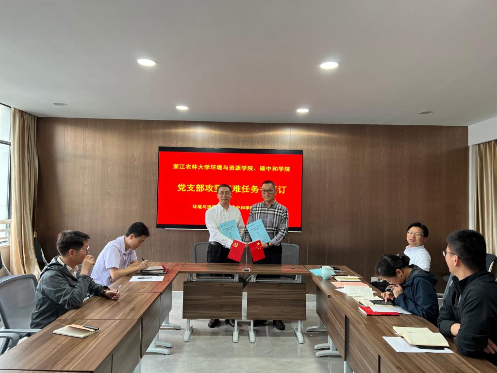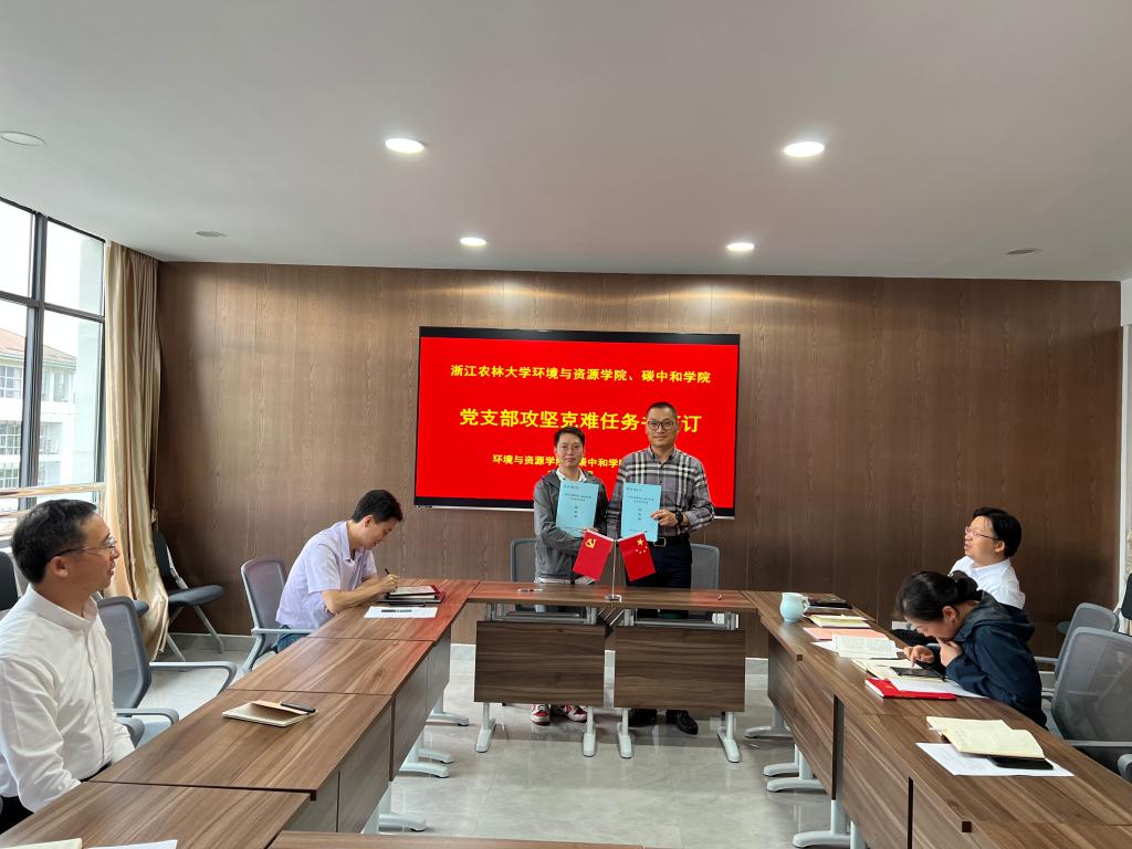會上,學院黨委分別與森林經(jīng)理學科教工黨支部、農(nóng)業(yè)資源與環(huán)境學科教工黨支部、環(huán)境科學與工程學科教工黨支部簽訂《黨支部攻堅克難任務書》,推進竹林碳匯研究工作站、資源利用領域農(nóng)業(yè)專博申報、環(huán)境科學與工程學碩點申報等專項工作。