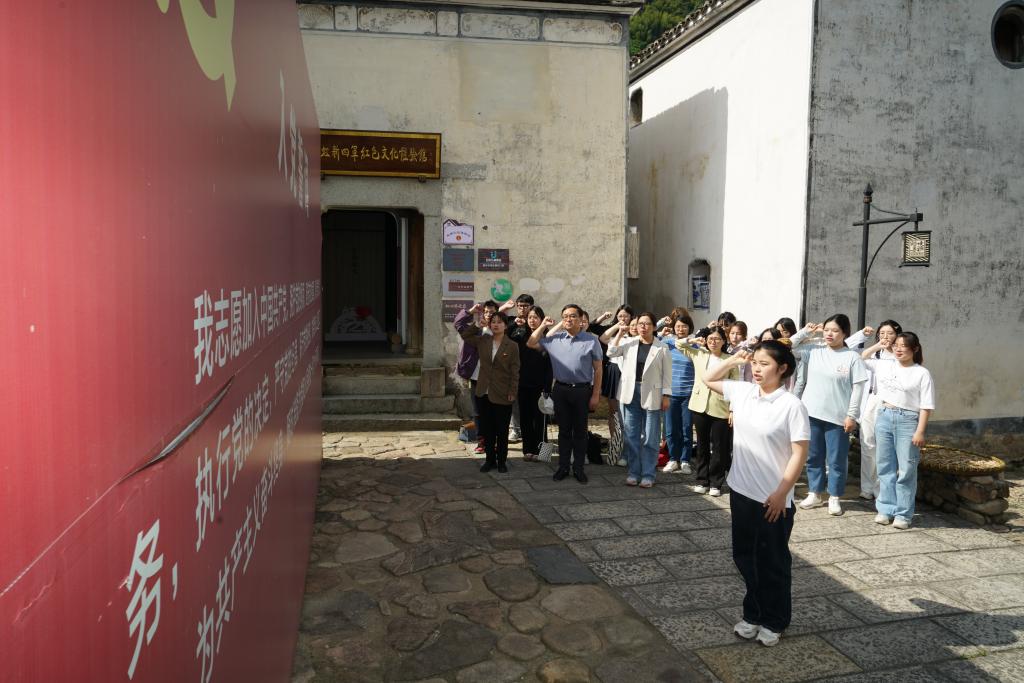 學院師生先后參觀了高虹新四軍紀念館、龍上村鄉村振興館、劉別生舊居遺址等。在高虹新四軍紀念館前,全體黨員同志重溫入黨誓詞,再次莊嚴宣誓,堅定初心和使命。