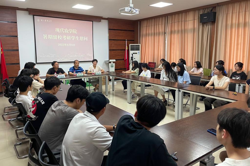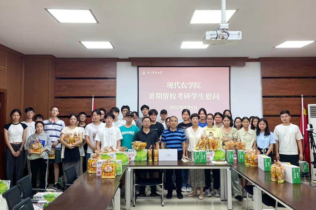 8月8日下午,農(nóng)學(xué)院院長曾大力,黨委書記梁衛(wèi)玲及學(xué)院相關(guān)負(fù)責(zé)人慰問暑假留校備戰(zhàn)考研學(xué)生,為同學(xué)們送上慰問品和美好祝愿。