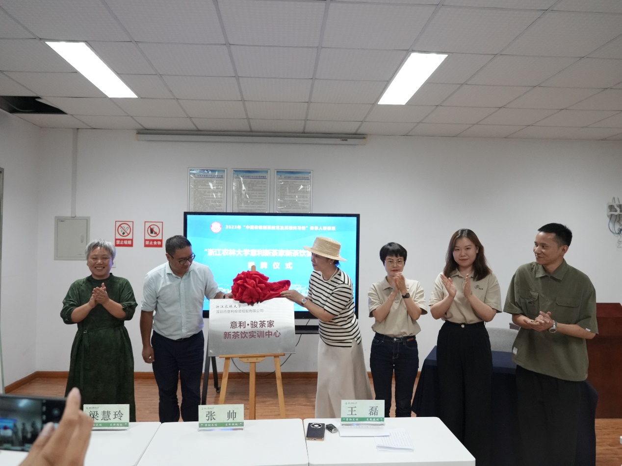 9月9日,由茶學院和深圳市意利投資控股有限公司聯合建立的“意利·駿荼家新茶飲實訓中心”揭牌儀式圓滿舉行,該實訓中心由意利投控捐贈。茶學院院長王磊、意利投資控股有限公司總經理孫琳、“中國傳統制茶技藝及其相關習俗”傳承人研修班學員、意利駿荼家相關部門負責人、茶學院部分師生代表出席了本次揭牌儀式。
