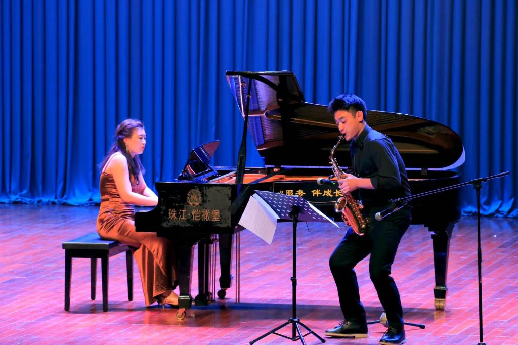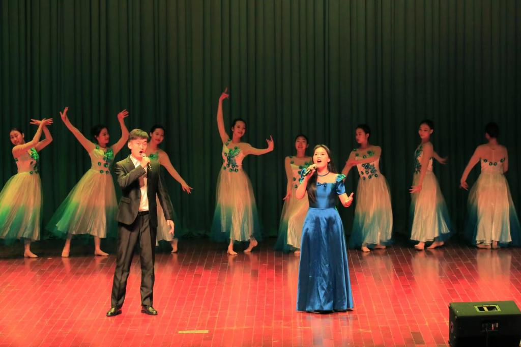 由張欣漪、王路敏、吳伊穎三位老師演唱的《在希望的田野上》拉開了整場演出的序幕,歌頌了改革開放以后的新變化、新面貌,展現了對幸福未來的憧憬。王琳帶來的女聲獨唱《踏歌起舞》,歌曲大氣磅礴,高音宛轉漂亮、蕩氣回腸,以深情為主調贊美祖國、歌唱家鄉,向觀眾充分地描繪出祖國幸福美好的新生活,讓觀眾內心澎湃。薩克斯與鋼琴合奏的《主題與幻想》作為歷史上第一首幻想曲,意大利歌劇的風格讓觀眾耳目一新。二重唱《燈火里的中國》把滿滿的祝福和無限的激情灑滿每一個角落,讓觀眾忍不住跟著輕哼。