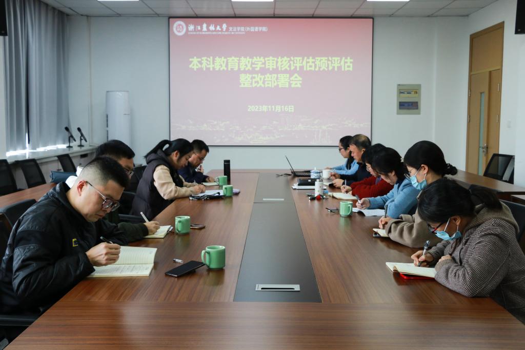 11月16日,文法學院召開本科教育教學審核評估預評估整改部署會。文法學院黨委書記朱紅東及相關負責人,各學科、專業負責人,教學秘書參加會議。