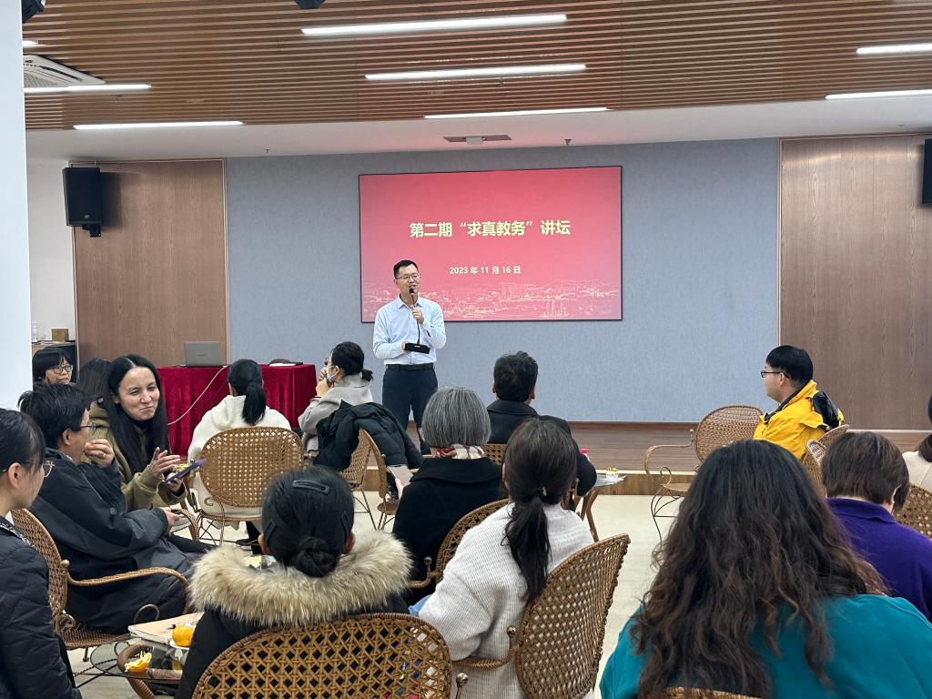 11月16日,主題為“科學規范排課,加強選課指導”的第二期“求真教務”講壇在校活動中心演藝吧成功舉行。教務處處長郭建忠出席。教務處全體人員及全體教學秘書參會。
