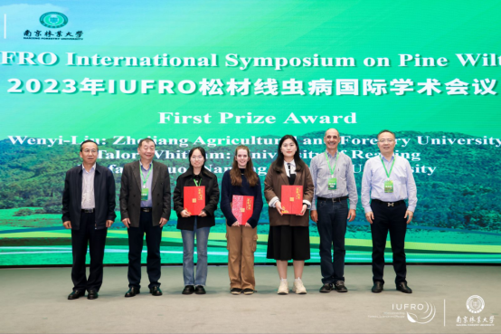 10月25-28日,由南京林業大學主辦的2023年國際林聯(IUFRO)松材線蟲病國際學術會議在南京召開。我校林業與生物技術學院松材線蟲病研究團隊的3位研究生做了學術報告,并全部獲得大會優秀青年學術報告獎。其中,博士研究生劉文義以第一名的成績獲得一等獎,博士研究生章彥君和碩士研究生陳靜分別獲得二等獎和三等獎。